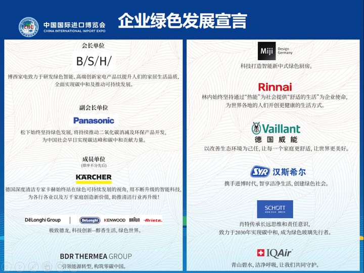 成立儀式現(xiàn)場(chǎng)還發(fā)布了專委會(huì)倡議書(shū),舉行了授牌儀式,各成員單位代表上臺(tái)宣讀企業(yè)綠色發(fā)展宣言。SYR漢斯希爾的發(fā)展宣言是“攜手進(jìn)博時(shí)代,智享潔凈生活,創(chuàng)建綠色社會(huì)。”自從上世紀(jì)80年代起,SYR漢斯希爾進(jìn)入水處理設(shè)備領(lǐng)域。經(jīng)過(guò)數(shù)十年的不斷研發(fā)和創(chuàng)新,水處理設(shè)備涉及前置過(guò)濾、末端凈水、中央軟水、中央凈水、防漏保護(hù)和暖通水凈化等品類。并不斷優(yōu)化產(chǎn)品體驗(yàn),在部分高端產(chǎn)品中加入了IoT物聯(lián)網(wǎng)智能系統(tǒng)。并以此形成整套全屋用水 “凈“ ”護(hù)” “智” “享” 解決方案。自從2018年起,SYR漢斯希爾已聯(lián)系三屆參展進(jìn)博會(huì),在未來(lái)的日子里,SYR漢斯希爾還將攜手進(jìn)博會(huì),不斷推進(jìn)綠色環(huán)保理念,共同創(chuàng)建綠色社會(huì)。